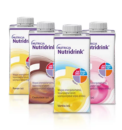 A Nutridrink egy magas energiatartalmú, tápanyagtartalom szempontjából teljes értékű speciális élelmiszer. Speciális gyógyászati célra szánt élelmiszer betegséghez kapcsolódó malnutríció diétás ellátására. Glutén- és laktózmentes. Rostmentes. Védőgázas csomagolásban. UHT sterilizált. Fontos figyelmeztetés Kizárólag enterális táplálásra. Parenterálisan nem alkalmazható. Kizárólag orvosi ellenőrzés mellett adható. Kizárólagos táplálásra alkalmas. 3 év alatti gyermekeknek nem adható. 3-6 éves kor között alkalmazása fokozott figyelmet igényel. Galaktozémiában szenvedő betegek részére nem adható.