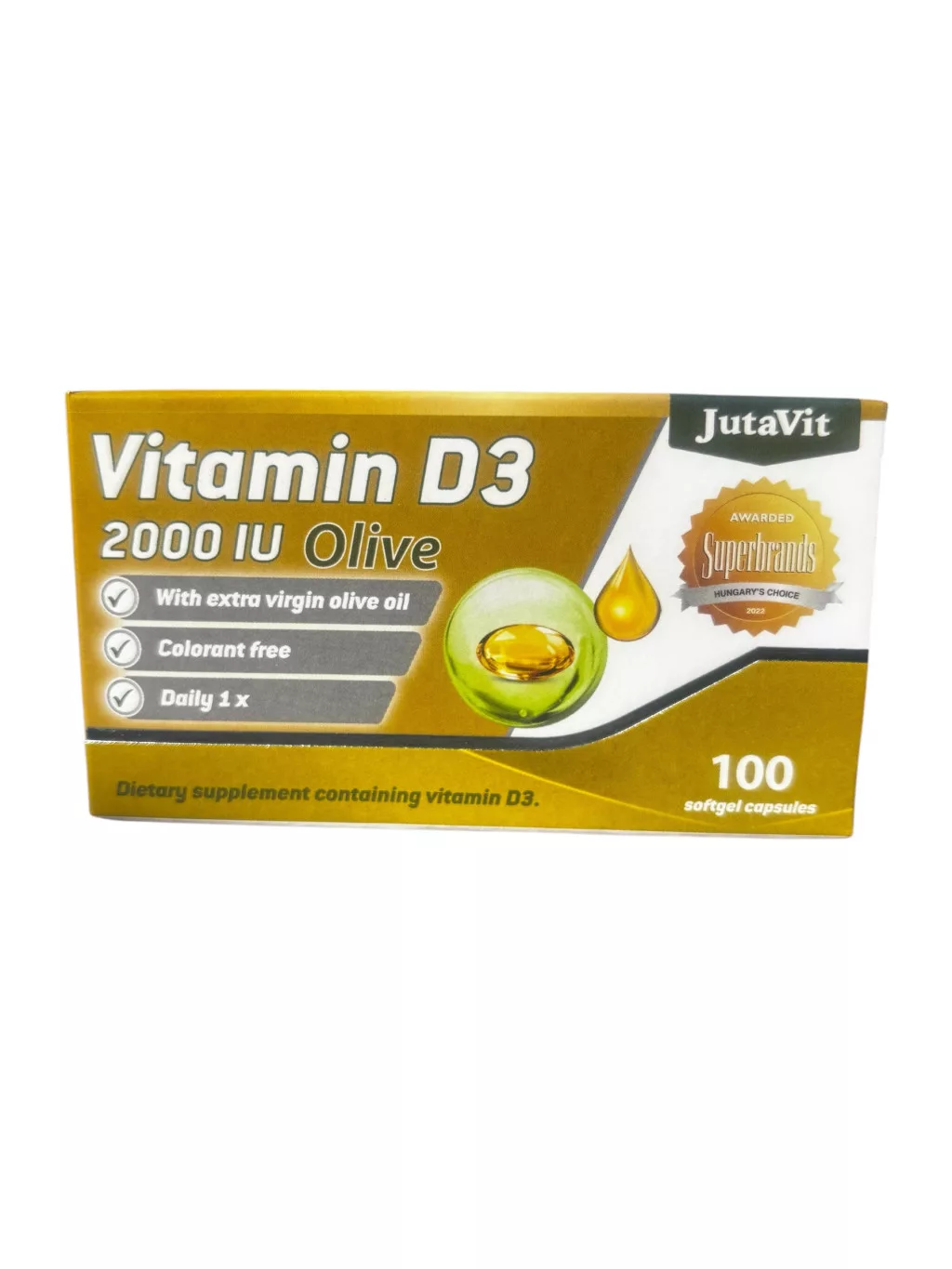 A D-vitamin a zsírban oldódó vitaminok családjába tartozik. A JutaVit D3-vitamin 2000 NE Olíva, a D-vitamint extra szűz olívaolajban oldott formában tartalmazza.