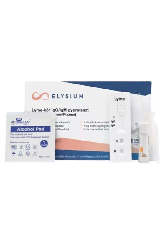 Az Elysium Lyme-kór IgG/IgM gyorsteszt professzionális felhasználásra készült. Köztudott, hogy a Lyme-kórt elsősorban kullancsok terjesztik, és a fertőzés kullancscsípéssel kerülhet át az emberi szervezetbe. A baktérium átadásához a kullancsnak jellemzően 24–48 órán át a bőrben kell maradnia.