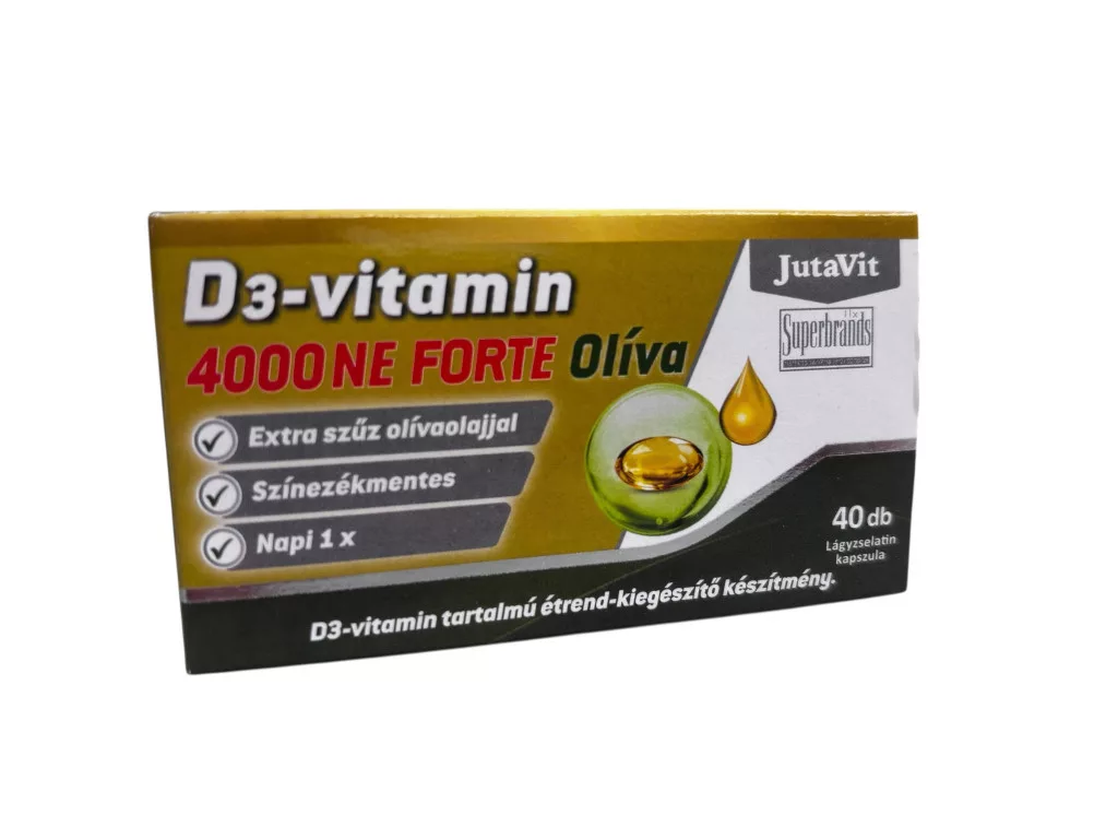 A D-vitamin a zsírban oldódó vitaminok családjába tartozik. A JutaVit D3-vitamin 4000 NE Forte Olíva, a D-vitamint extra szűz olívaolajban oldott formában tartalmazza.